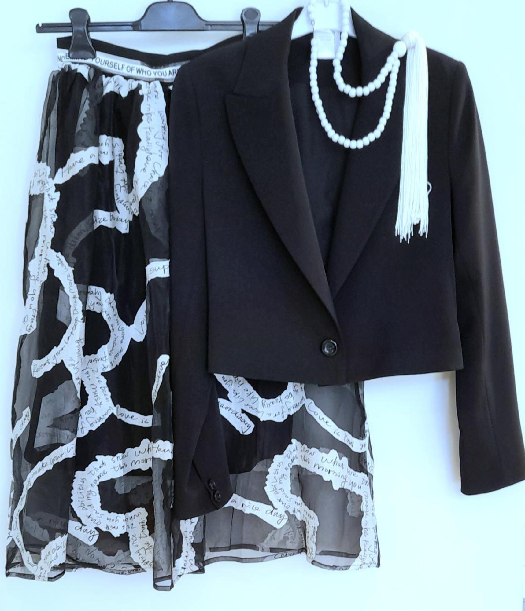 ΦΟΥΣΤΑ ΟΡΓΑΝΤΖΑ ΑΣΠΡΟΜΑΥΡΗ ΜΕ ΛΑΣΤΙΧΟ ΣΤΗΝ ΜΕΣΗ